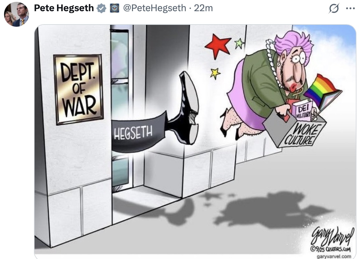 Almost immediately, Sec. Hegseth took to social media and posted a cartoon about it, shown above.