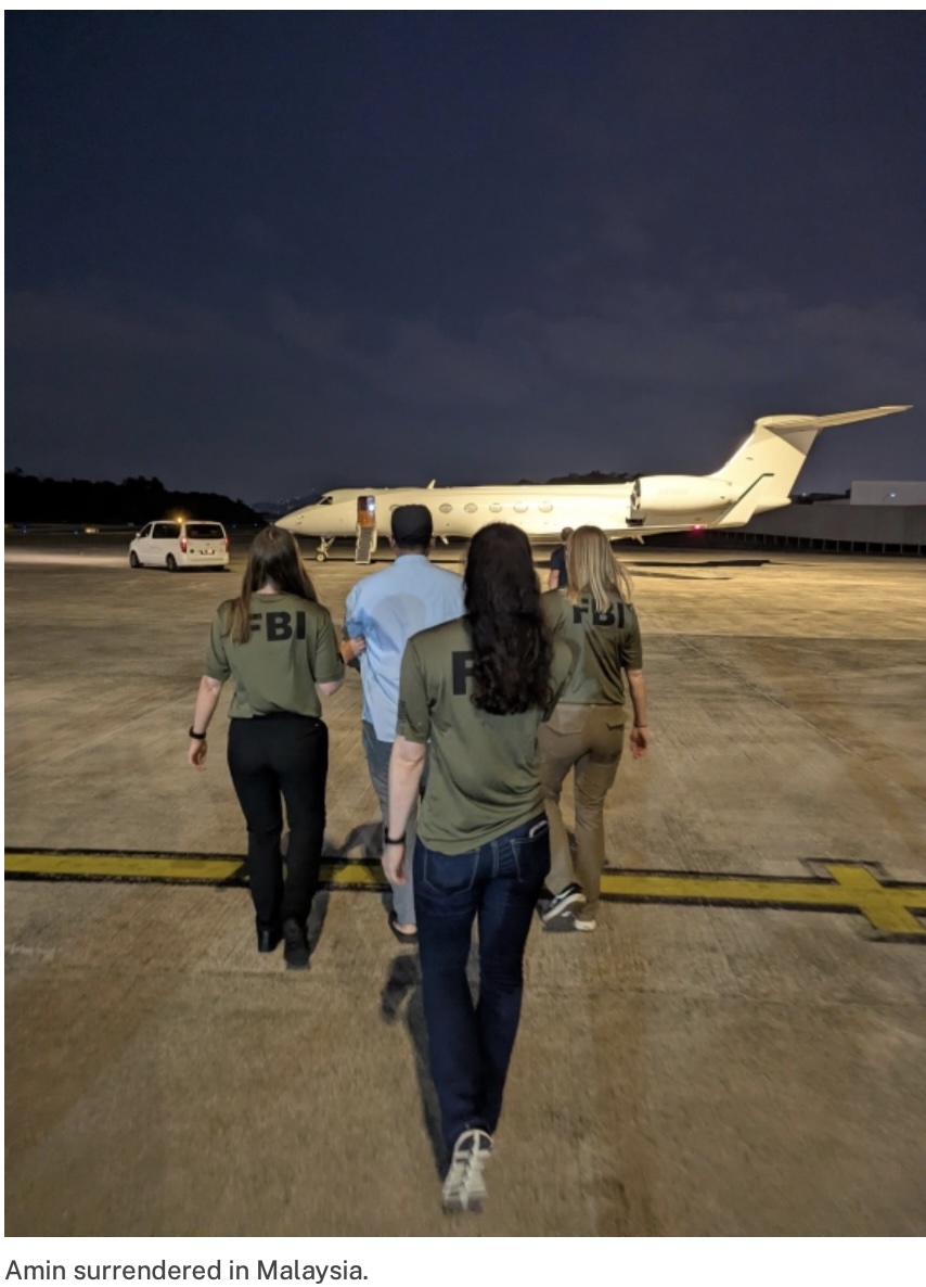 After more than two years of coordination between US and Malaysian authorities, Amin was transferred to the United States by the FBI on March 4 and brought to Anchorage to face the federal charges.