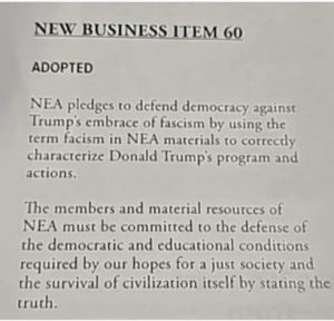 And don’t forget that a substantial amount of your union dues is sent to the national organization, NEA-National, which uses that money to foster anti-ICE activity, transgender activities, social justice, anti-Trump, and other progressive ideas.