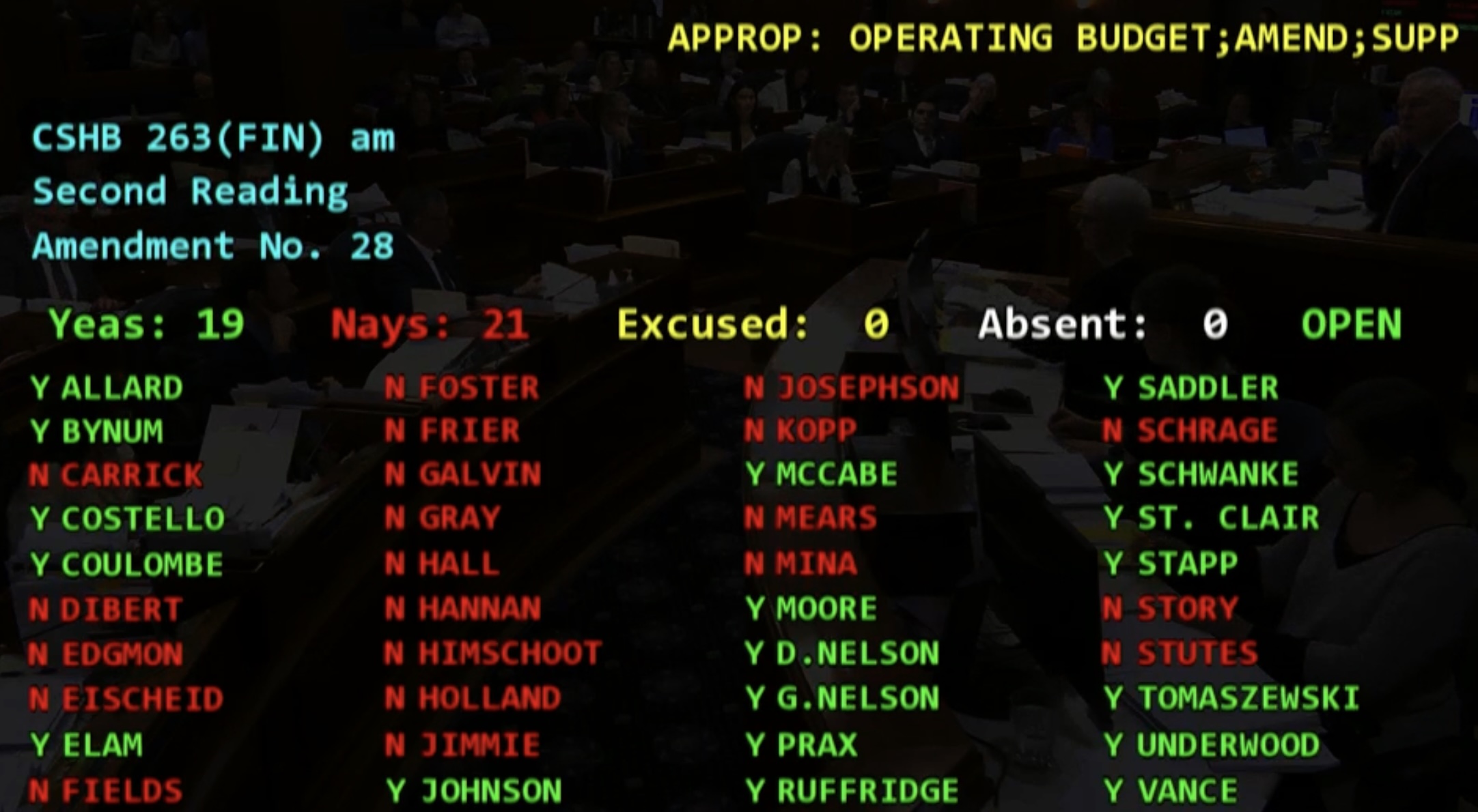 The amendment ultimately failed on the House floor, 19-21. The Democrat majority prevailed.