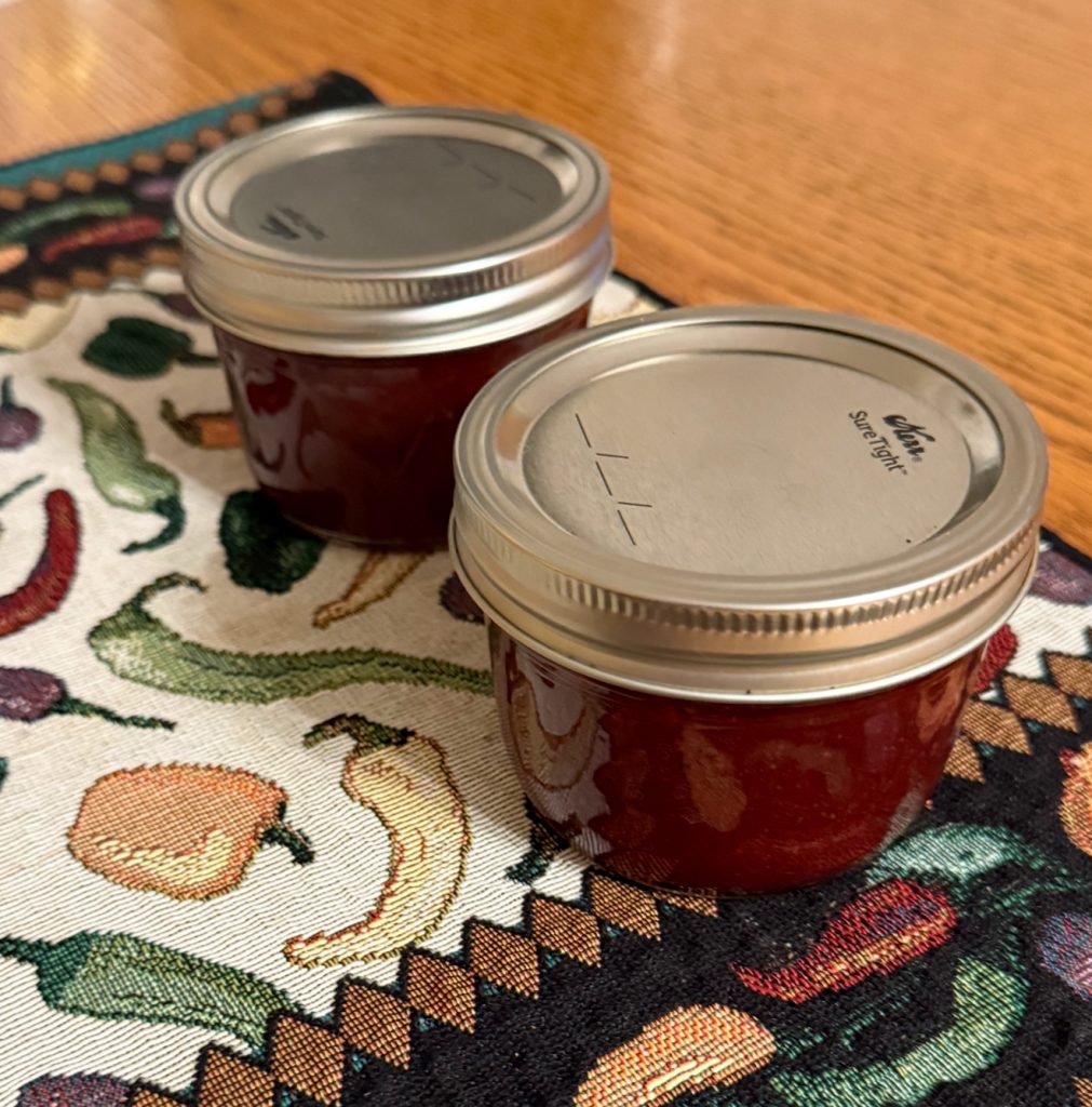The biggest job is straining out the seeds after you cook the berries enough that they soften and explode. I cook mine outside and then bring them indoors to finish. The result is about eight half-pint jars of barbecue sauce, enough for you and a few friends. Don’t be timid about cooking them down so it’s a thick sauce.