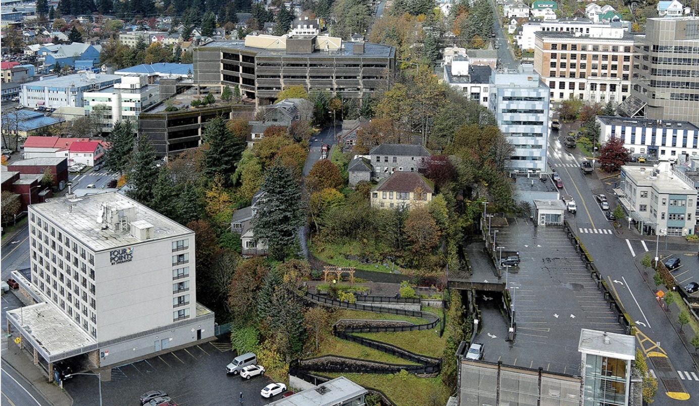 Telephone Hill, a four-acre cluster of seven structures with 13 residential units in downtown Juneau, was deeded to the city by the state in 2023, after state plans to build a new capitol building came to naught. City officials plan to demolish the buildings and replace them with higher-density housing—potentially 100 to 150 units—to help alleviate Juneau’s housing shortage.