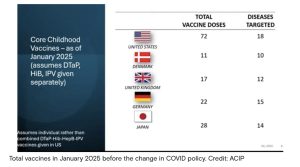 Shortly after that meeting, President Trump ordered HHS Secretary Kennedy and the director of the CDC to look at best practices from other countries to see if the current vaccine schedule makes sense. Trump stated, “In January 2025, the United States recommended vaccinating all children for 18 diseases, including COVID-19, making our country a high outlier in the number of vaccinations recommended for all children. Study is warranted to ensure that Americans are receiving the best, scientifically supported medical advice in the world.”