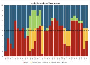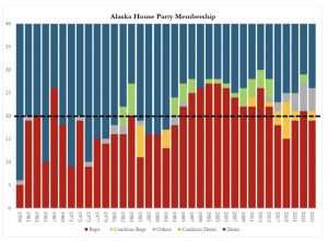 We have to remember that Alaska started out as a Democrat state. Our constitution is one of the most liberal in the country. Our first federal delegation was all Democrats. The State House was solidly Democrat for the first 30 years of statehood, with the exceptions of the 1966 fluke election that briefly brought Republicans control of the governor’s office and both chambers of the legislature for the first time in state history, a situation that didn’t repeat until 1994, and the House coup in 1981, which gave Republicans control of the chamber from mid-1981 to 1984.