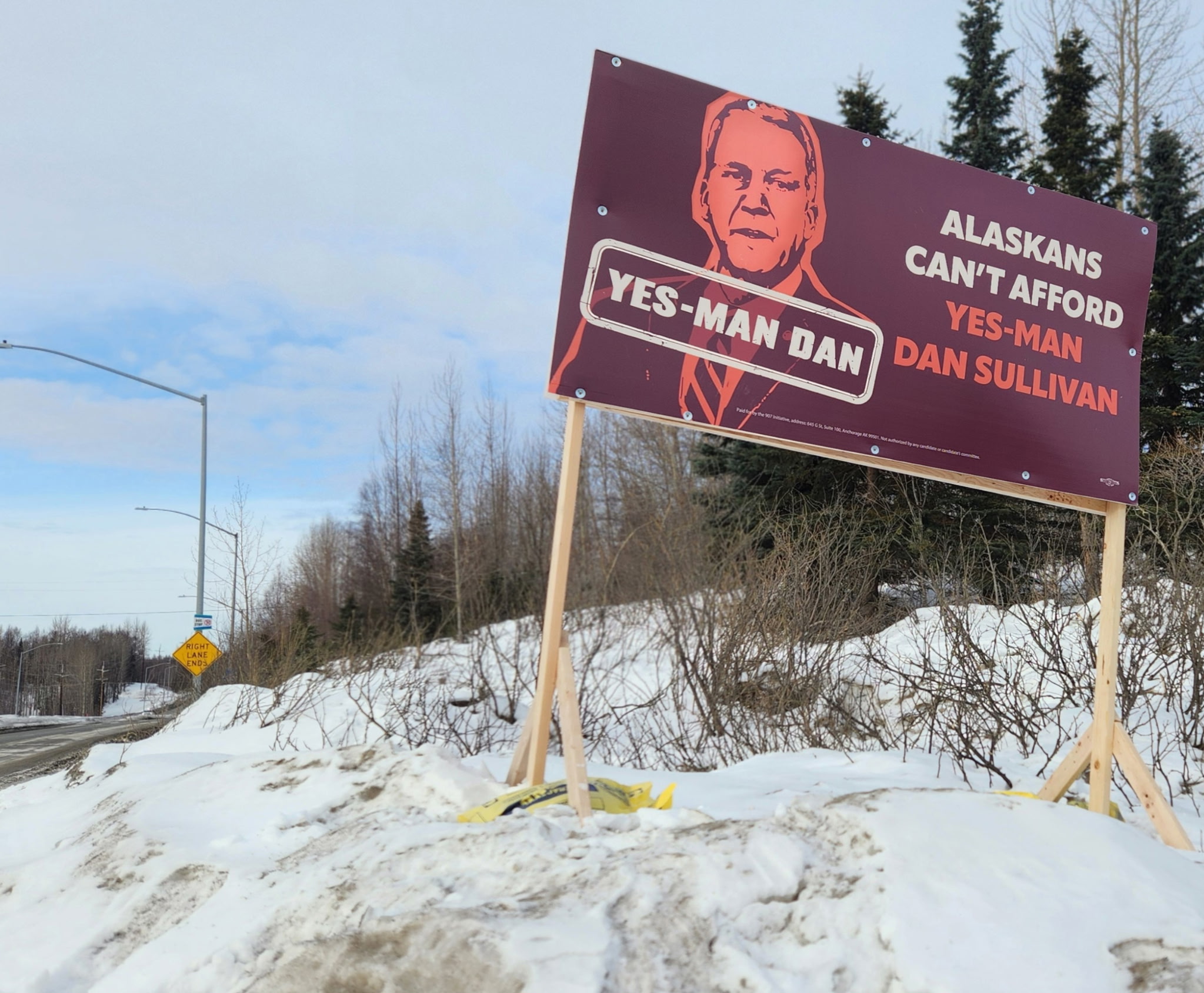 The sign comes as Alaska’s US Senate race begins to take shape, with former Rep. Mary Peltola challenging Sullivan. Peltola, a Democrat, lost her at-large congressional seat in 2024 to Republican Nick Begich.
