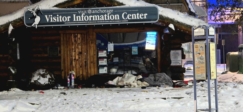 THE CITY’S ‘SPRUNG’ HOMELESS SHELTER IS WARMING SAND AT THE PORT As temperatures plunge and … Continue reading Street people camp in doorway of Anchorage Visitor Center as winter sets in