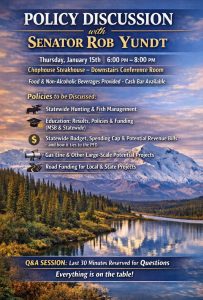 A constituent meeting hosted Thursday by Sen. Rob Yundt at the Chop House in Wasilla has raised questions about the use of public resources and compliance with state ethics and campaign laws after the gathering shifted from legislative outreach to repeated promotion of a gubernatorial candidate.