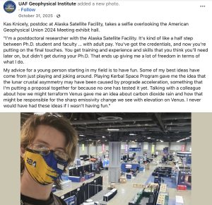 Knicely’s public profile reflects a career in scientific research. In an October 2025 post by the UAF Geophysical Institute, he was featured as a postdoctoral researcher working at the Alaska Satellite Facility. In that post, Knicely described his role as “a half step between Ph.D. student and faculty … with adult pay,” emphasizing the freedom to pursue research ideas and the importance of creativity in scientific discovery.